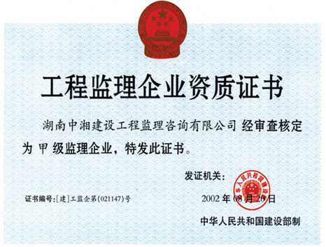 工程監(jiān)理企業(yè)資質(zhì)證書(shū)