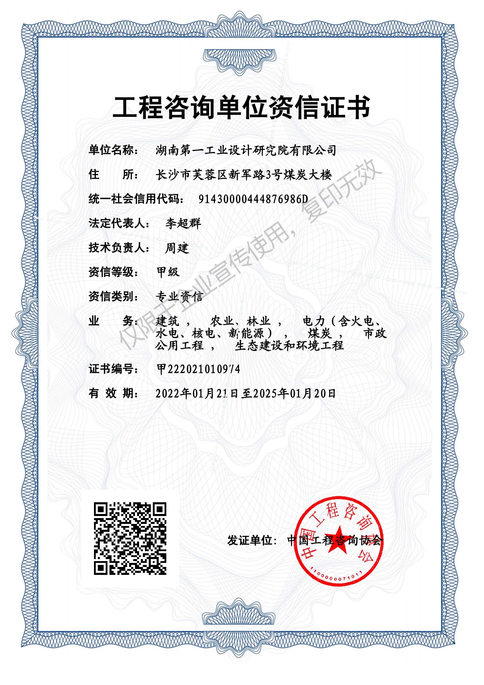 工程咨詢單位甲級(jí)資信證書(shū)