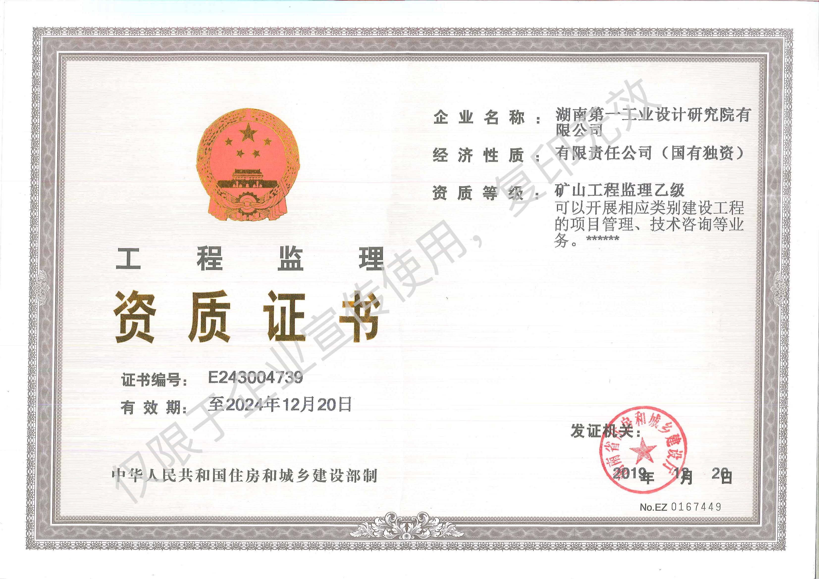 工程監(jiān)理與項(xiàng)目管理企業(yè)證書(shū)
